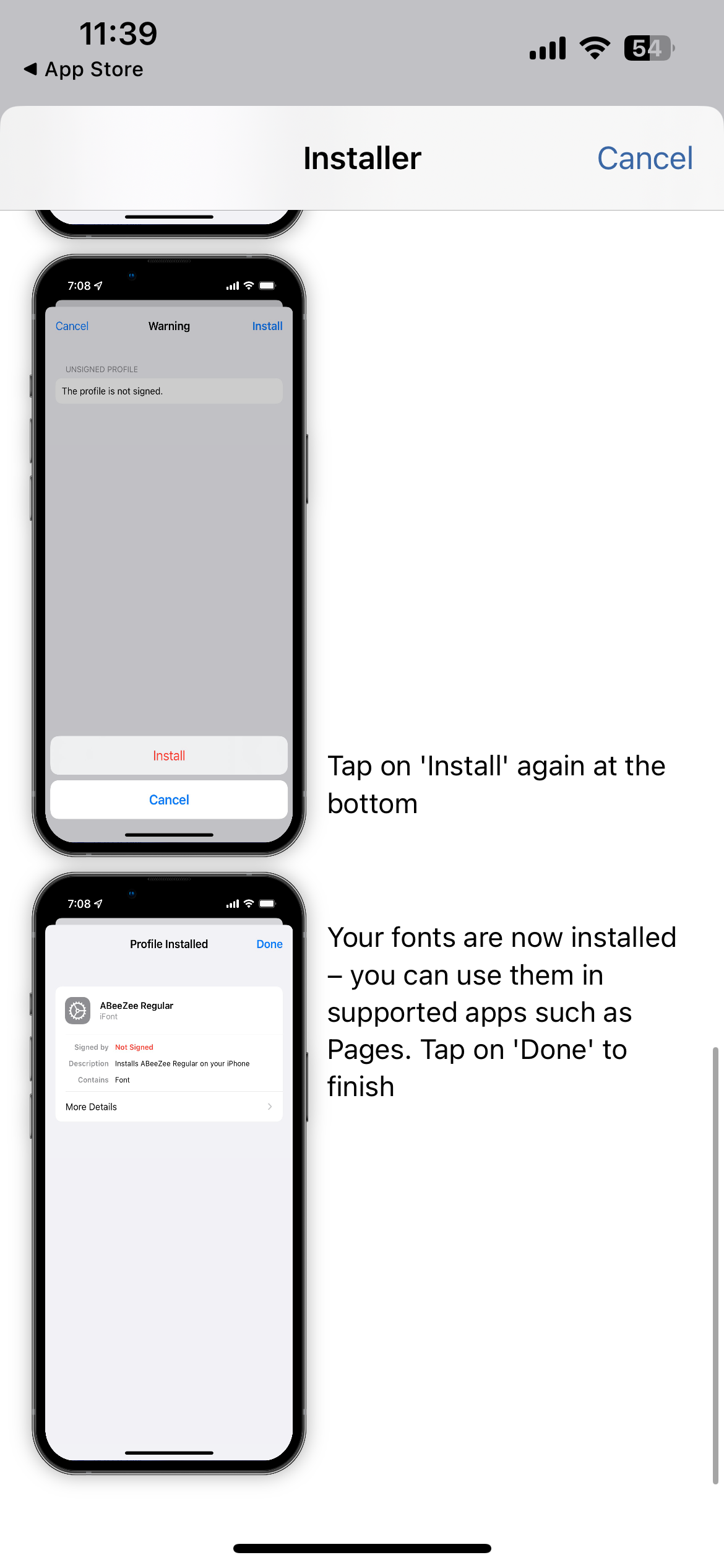 2.아이폰 폰트 설치 허용 방법(앱 내 설명 안내)