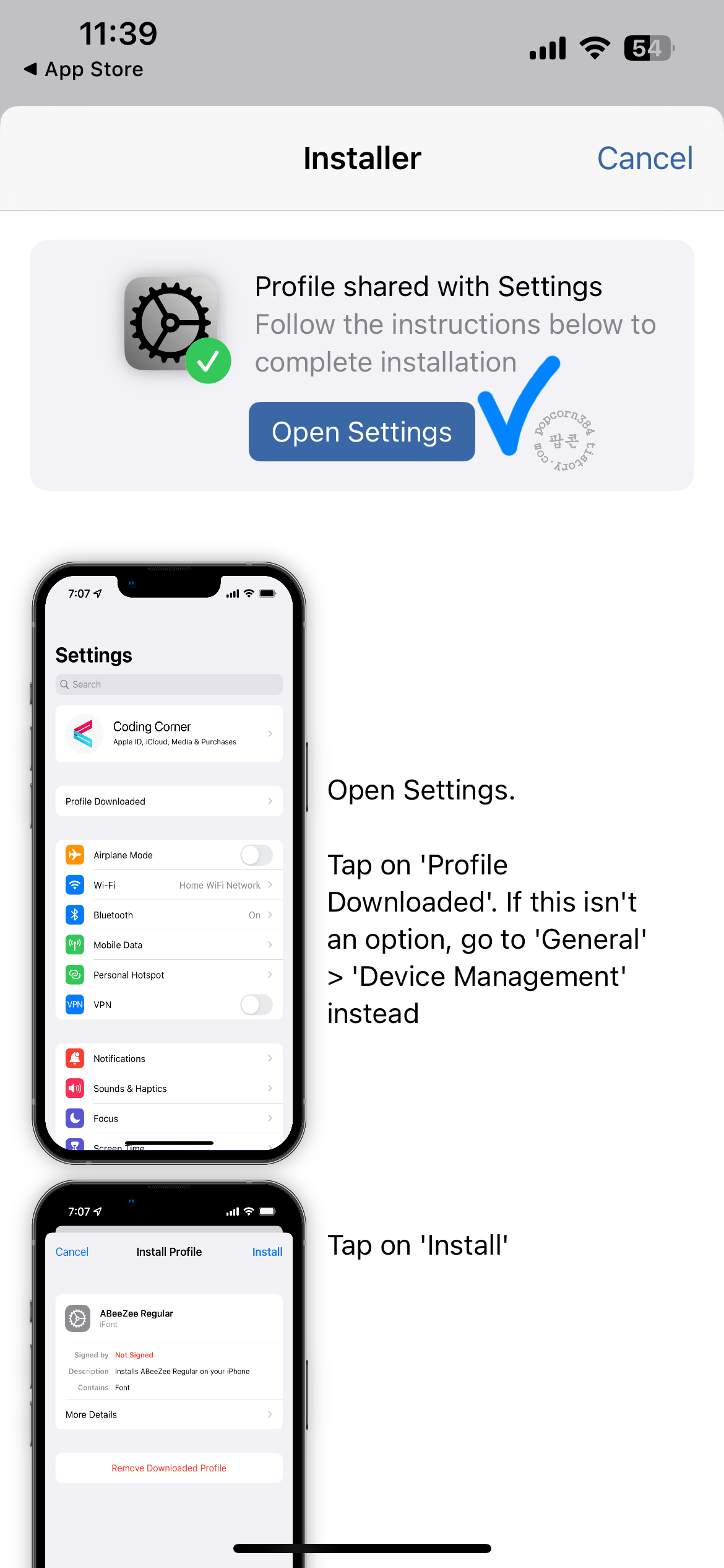 3.프로파일 설치 방법(설정 앱 통해서 진행)