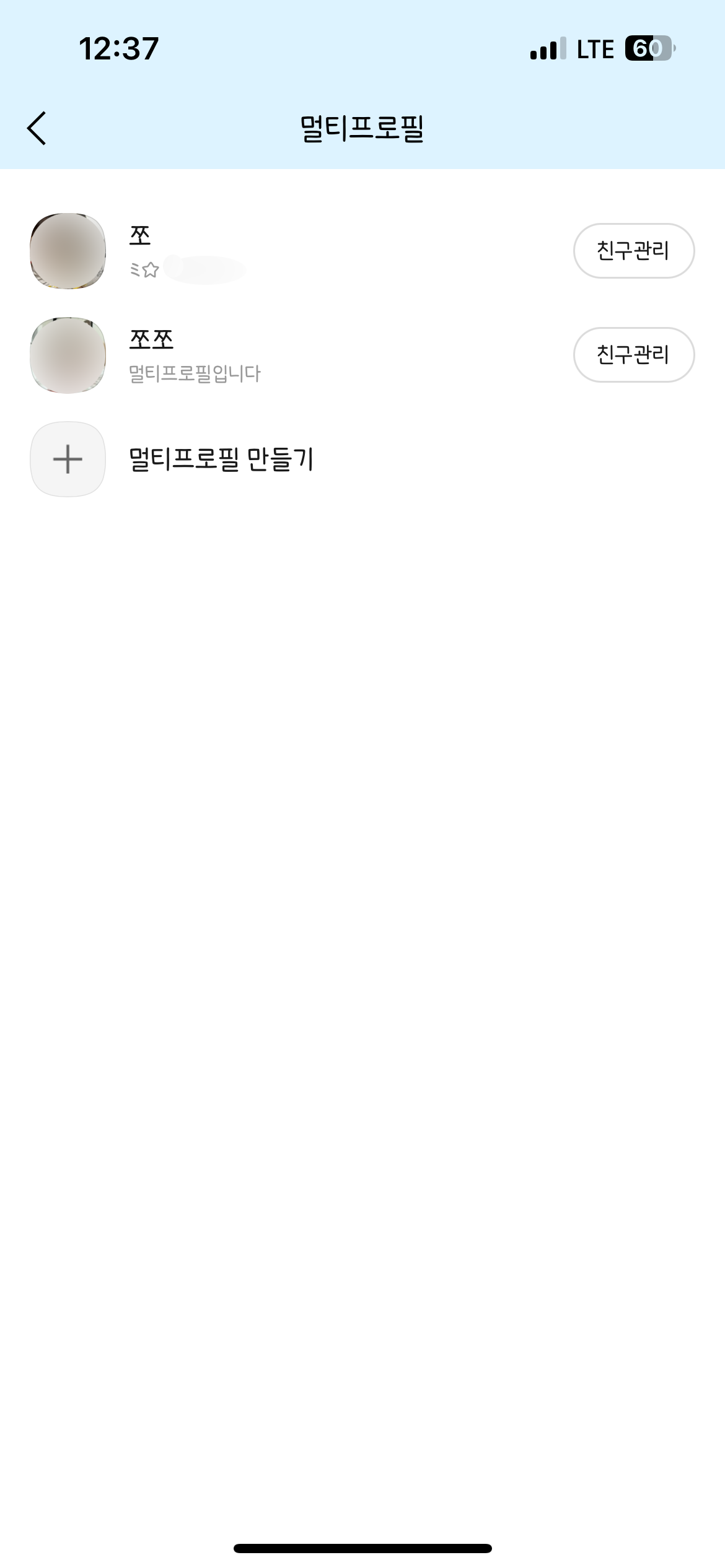 멀티프로필의 위치가 작아서 마음에 들었었는데, 상태메시지 부분을 가리고 멀티프로필 아이콘이 차지하게 되었어요. 멀티프로필이 없으면 멀티프로필+ 모양으로 떠 있어요. 멀티프로필을 사용할 때 프로필에 무언가 업데이트가 떴을 때 이제는 좀 더 직관적으로 보이게 되었네요.