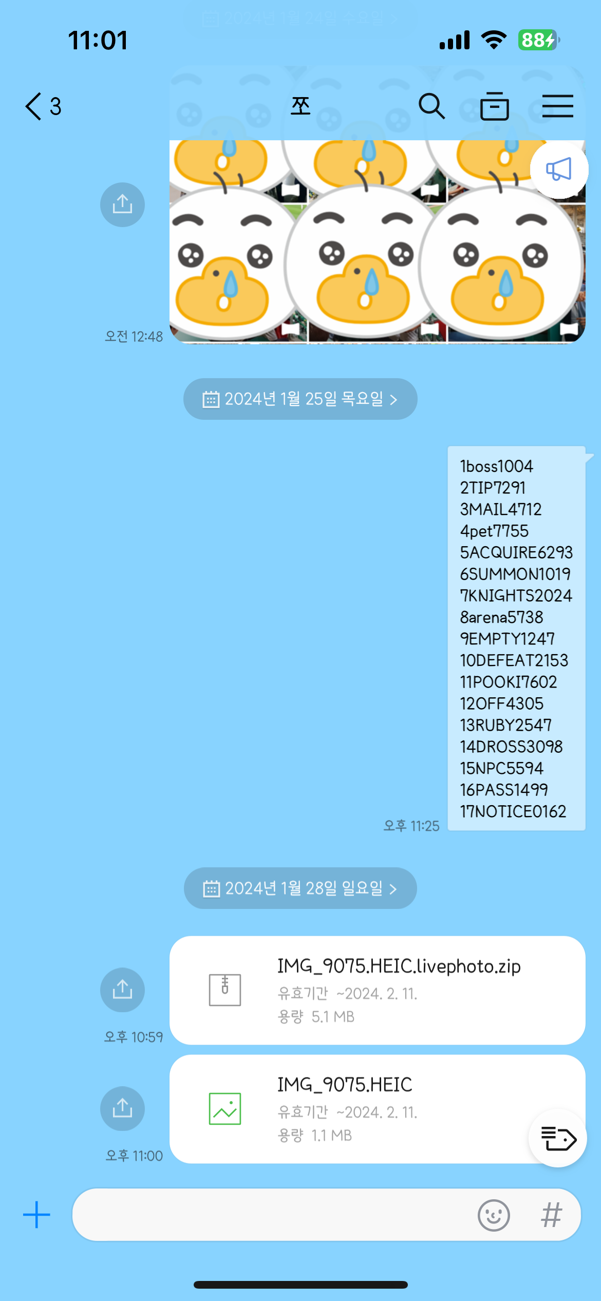 파일에서 '앨범에서 선택' 이 새롭게 생긴 것 같아요. 파일은 파일에서만 보내는 거였던 것 같은데 이제는 앨범에서 라이브포토 사진도 보낼 수 있다고 하네요. 앨범에서 선택할 때 '라이브포토' 폴더는 안 보입니다. 라이브 포토인 사진을 확인하고 보냈더니 2종류로 선택해서 보낼 수 있더라고요. 라이브포토 파일로 보내고 싶다면 livephoto.zip으로 전송해야합니다.