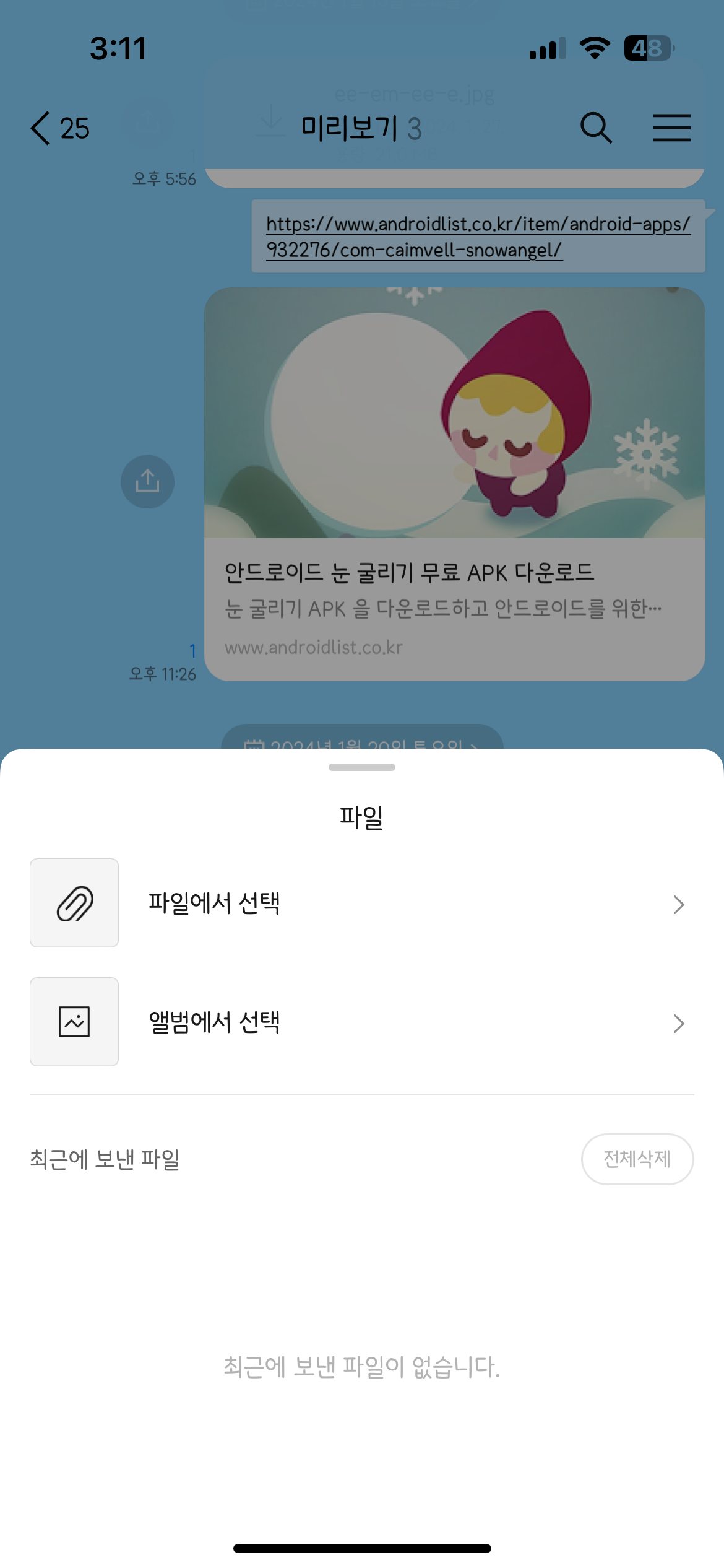 • 채팅방 파일 전송에 앨범에서 선택 메뉴 추가