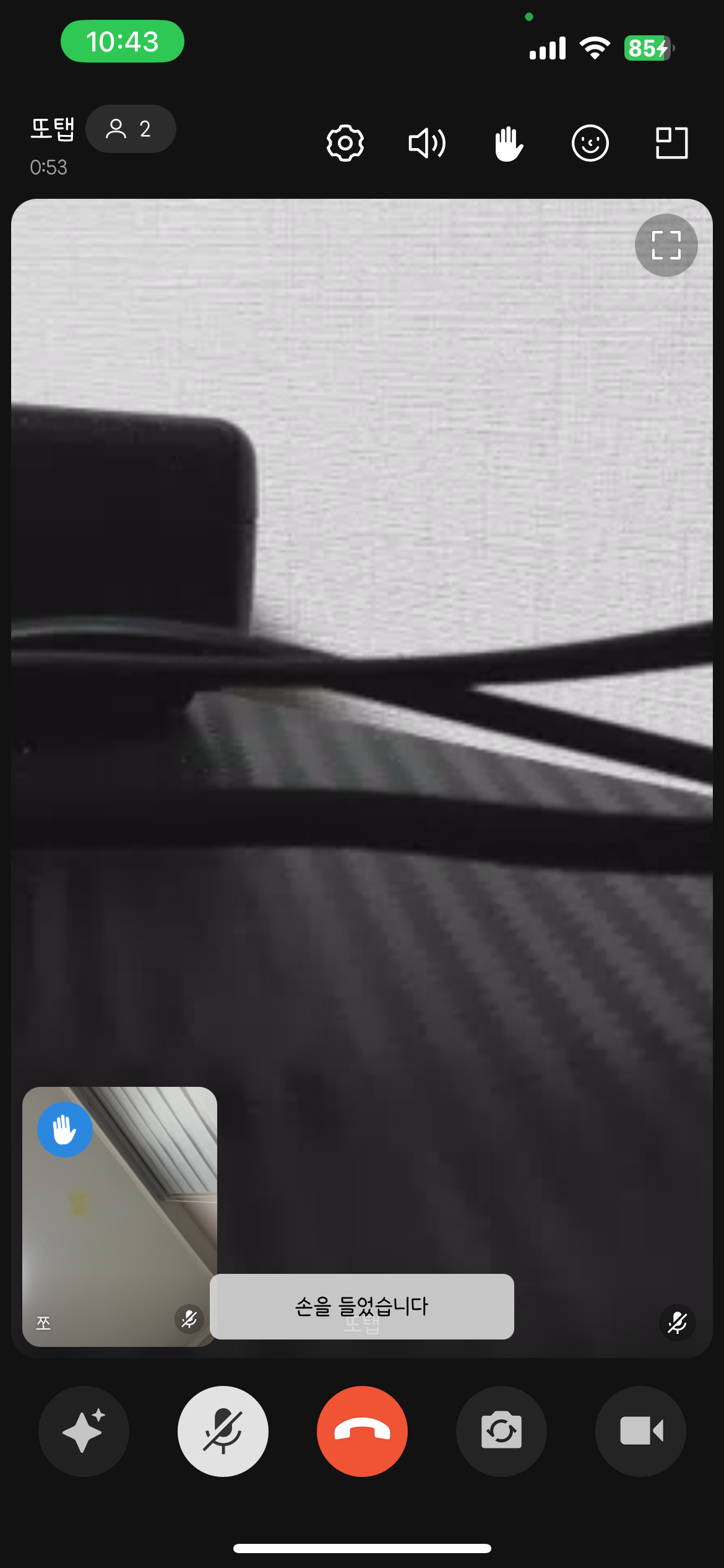 보이스룸에서 손들기 사운드가 추가되었다고 하네요.손들기 아이콘을 누르면 띠롱!하네요. 소리가 나니깐 화면으로 더욱더 시선이 가는 것 같아요. 파란색 손 스티커가 흔들~하면서 움직이고 소리도 나더라고요. 손을 들었을 때 인식하는 것 같진 않고 페이스톡 화면에서 손바닥 스티커를 누르면 되는 것 같아요.