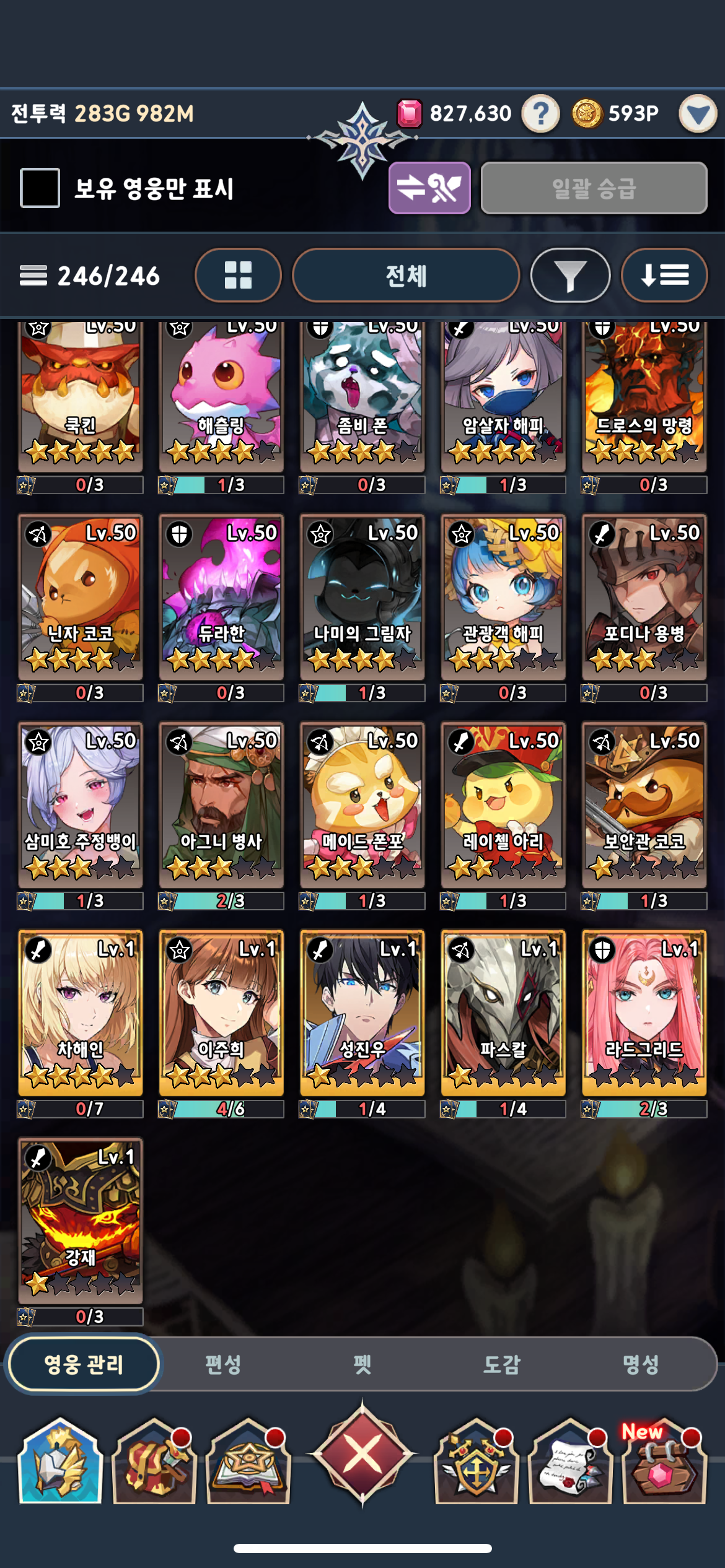 세븐나이츠는 다섯 영웅으로만 할 수 있었는데, 이번 세븐나이츠 키우기는 열 영웅으로 가능해서 선택의 폭이 넓어져서 더욱더 마음에 들더라고요. 좋아하는 영웅들 뽑는 재미를 다시 한 번 느껴볼까 합니다.