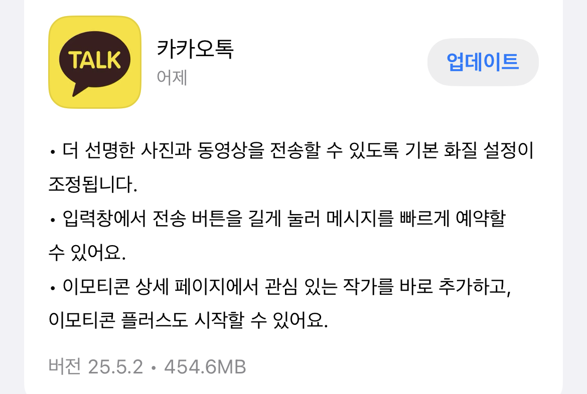 카톡 25.5.2버전 업데이트가 나왔어요.