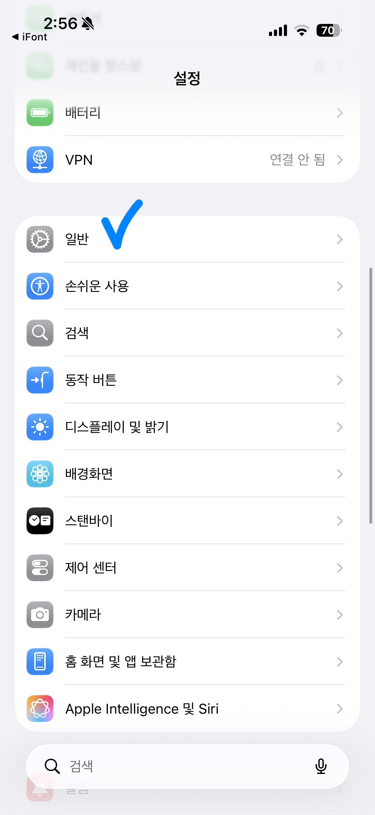앱에서 바로 접근하지 못했다면 설정 앱 위 순서대로 접근하면 됩니다.