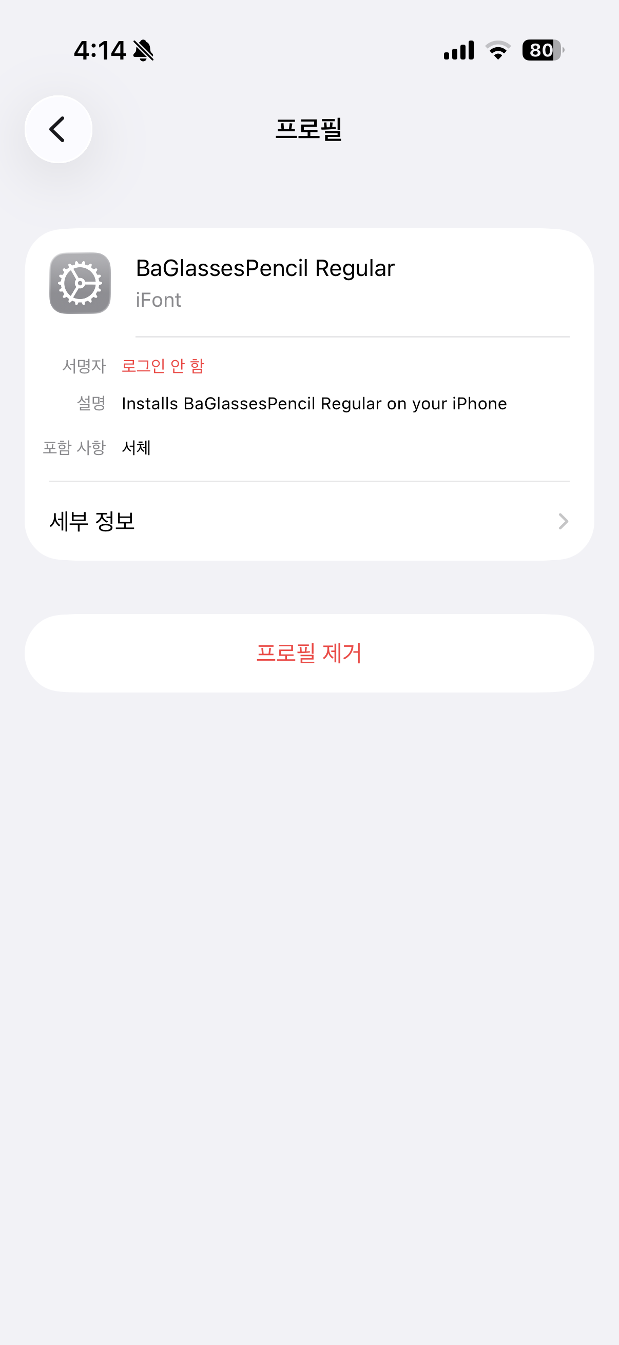 설치된 모습은 마지막 모습입니다. 삭제하는 방법은 설치 후 다시 눌러서 프로필 제거로 삭제하면 됩니다.